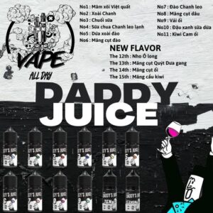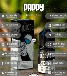 Các chai daddy có độ lạnh trung bình khá và có vị ngọt rất tự nhiên chứ không ngọt gắt. Cái ngọt của daddy hình như được tạo ra từ khói chứ không phải từ tinh dầu. Khiến anh em vaping cực kỳ chill và khó ngán. Một dòng juice “Thơm và ngon lắm”