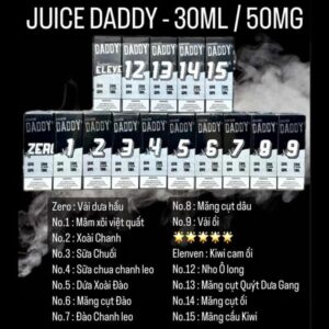 Các chai daddy có độ lạnh trung bình khá và có vị ngọt rất tự nhiên chứ không ngọt gắt. Cái ngọt của daddy hình như được tạo ra từ khói chứ không phải từ tinh dầu. Khiến anh em vaping cực kỳ chill và khó ngán. Một dòng juice “Thơm và ngon lắm”
